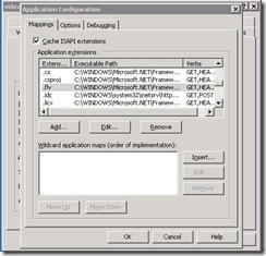 Add the entry for .flv, click edit, and copy the path in the executable field. This is the aspnet_isapi.dll for the current version of the .NET Framework of your virtual site. Cancel out of that dialog and click "add." Paste the path into the executable, use the extension .flv and set your verbs limited to "GET, POST, HEAD, DEBUG" like this: